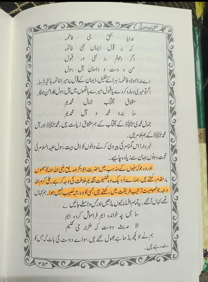 Sayyid Nurani Miya Kichochawi ki wazahat ka jawab: 1. Sayyid sahib, jan lein ke tafziliiyya qism e rawafiz hai jis tarhan a’lahazrat aur sahibe fath ul qadeer aur deegar kutub me hai. pehle post dekhein. ye ghair muhtat wale jumle nahi the balke ye intehai bewaqoofi hai. A'lahazrat radhiyallahu ta'ala anhu farmate hain: ¹ ولہذا ائمہ دین نے تفضیلیہ کو روافض سے شمار کیا کمابیناہ فی کتابنا المبارك مطلع القمرین فی ابانۃ سبقۃ العمرین۱۳۹۷ھ Fatawa hindiyya sharif m hai: لرافضي إذا كان يسب الشيخين ويلعنهما والعياذ بالله ، فهو كافر ، وإن كان يفضل عليا كرم الله تعالى وجهه على أبي بكر رضي الله تعالى عنه لا يكون كافرا إلا أنه مبتدع والمعتزلي مبتدع إلا إذا قال باستحالة الرؤية ، فحينئذ هو كافر كذا في الخلاصة . ولو قذف عائشة رضي الله تعالى عنها بالزنا كفر بالله ، ولو قذف سائر نسوة النبي صلى الله عليه وسلم لا يكفر ويستحق اللعنة ، ولو قال عمر وعثمان وعلي رضي الله عنهم لم يكونوا أصحابا لا يكفر ويستحق اللعنة كذا في خزانة الفقه- من أنكر إمامة أبي بكر الصديق رضي الله عنه ، فهو كافر ، وعلى قول بعضهم هو مبتدع وليس بكافر والصحيح أنه كافر ، وكذلك من أنكر خلافة عمر رضي الله عنه في أصح الأقوال كذا في الظهيرية . Majma` al-Anhar me hai: الثانية الردة بسب الشيخين أبي بكر وعمر رضي الله عنهما وقد صرح في الخلاصة والبزازية بأن الرافضي إذا سب الشيخين وطعن فيهما كفر وإن فضل عليا عليهما فمبتدع ولم يتكلما على عدم قبول توبته وفي الجوهرة من سب الشيخين أو طعن فيهما كفر ويجب قتله ثم إن رجع وتاب وجدد الإسلام هل تقبل توبته أم لا قال الصدر الشهيد لا تقبل توبته وإسلامه ونقتله وبه أخذ الفقيه أبو الليث السمرقندي وأبو نصر الدبوسي وهو المختار للفتوى ا هـ .وحيث لا تقبل توبته علم أن سب الشيخين كسب النبي صلى الله عليه وسلم فلا يفيد الإنكار مع البينة كما تقدم عن فتح القدير لأنا نجعل إنكار الردة توبة إن كانت مقبولة كما لا يخفى Bahr al-Ra`iq me hai : ولا يخفى أن قوله ويا رافضي بمنزلة يا كافر أو يا مبتدع فيعزر ؛ لأن الرافضي كافر إن كان يسب الشيخين ومبتدع إن فضل عليا عليهما من غير سب كما في الخلاصة وسيأتي في باب الردة إن شاء الله تعالى Fath al-Qadir me hai ولا بأس بتفصيله الاقتداء بأهل الأهواء جائز إلا الجهمية والقدرية والروافض والقائل بخلق القرآن والخطابية والمشبهة وجملته إن كان من أهل قبلتنا ولم يغل حتى لم يحكم بكفره تجوز الصلاة خلفه وتكره ولا تجوز الصلا خلف منكر الشفاعة والرؤية وعذاب القبر والكرام الكاتبين؛ لأنه كافر لتوارث هذه الأمور عن الشارع – صلى الله عليه وسلم -. ومن قال لا يرى لعظمته وجلالته فهو مبتدع كذا قيل وهو مشكل على الدليل إذا تأملت، ولا يصلي خلف منكر المسح على الخفين والمشبه إذا قال له تعالى يد ورجل كما للعباد فهو كافر ملعون وإن قال جسم لا كالأجسام فهو مبتدع؛ لأنه ليس فيه إلا إطلاق لفظ الجسم عليه وهو موهم للنقص فرفعه بقوله لا كالأجسام فلم يبق إلا مجرد الإطلاق وذلك معصية تنتهض سببا للعقاب لما قلنا من الإيهام بخلاف ما لو قاله على التشبيه فإنه كافر وقيل يكفر بمجرد الإطلاق أيضا وهو حسن بل أولى بالتكفير وفي الروافض إن فضل عليا – رضي الله عنه – على الثلاثة فمبتدع وإن أنكر خلافة الصديق أو عمر فهو كافر 2. sayyid sahib, jan lein ke ijma’ qati’ bi ma'na al akhas hai afzaliyat e shaykhayn radhiyallahu anhum par hai - is par jumhur nahi hai ijma’a hai 3. radd e shi`iyat k silsile me maulana muhammad ali naqshbandi kilani sahib aur deegar ulama ne kam kiya hai. lihaza ap ke ye bat bhi durust nahi hai ke sunniyon ne radd e shiiyat par kam nahi kiya. 4. masla e abu talib pr kafi hai ke sayyid noorani miya ne aik eilamiya par dastakhat kiya tha jo jumhur ke rai par tha.